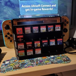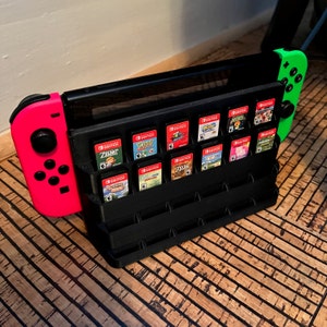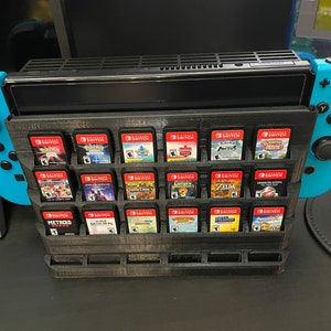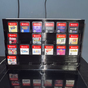 - Displays 12 or 24 Switch game cartridges with the labels visible.
