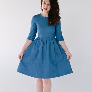 Denim midi dress, blue cotton dress, dark denim dress, light denim dress, skater dress, custom dress, spring summer dress, every day dress