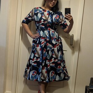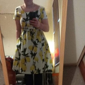 My picture can’t do it justice, a lovely well made dress with beautiful shape. I added a belt to give it a bit more of a waist but it’s honestly gorgeous! Lots of compliments all round!