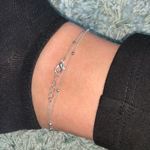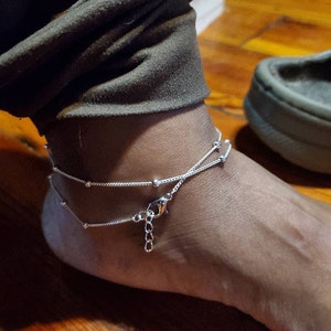 ~ Silver beaded anklet has a clasp and extender chain to close.