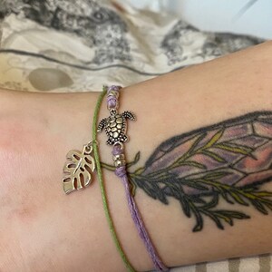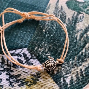 Sea Turtle Anklet - Waterproof Wax Nylon Cord - Adjustable - Ankle Bracelet - Beach Jewelry - Surfer - Tropical - Silver Turtle - Gift
