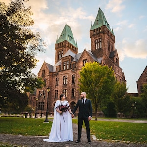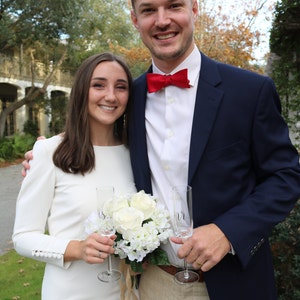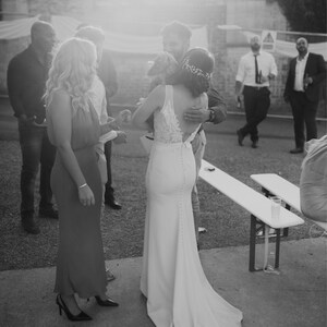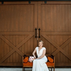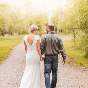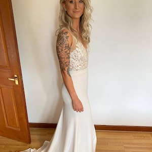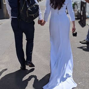 The dress was beautiful and SO perfect. Fit just right. Helga was very responsive and had my custom dress to me within 1.5 months. I received so many compliments about how simple, elegant, and classy it was. I’m so glad I found her shop! I wish I could post 2 photos. The back looked amazing as well.