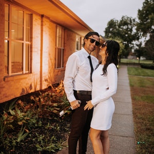 Short wedding two piece dress, Modern and minimalist wedding dress, Simple white dress for sophisticated brides, Top and skirt separates