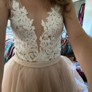 Two piece wedding dress, Bridal separates, Short wedding dress, Bridal gown, Lace wedding top, Wedding skirt, Handmade embellishment