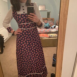 Up-cycled rustic pinafore 'Sima' M-2X, Boho patchwork floral pinafore, farm chic colorful pinafore dress.