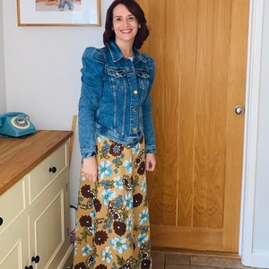 Denim dress, handmade relaxed fit blue denim dress, knee length, 3/4 raglan sleeves, pockets, denim pinafore dress, size 10/ 12 UK, 38" bust