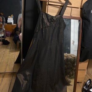Vintage 80s black moire taffeta ball gown/ prom dress, size 8/ 10 low back, 30s style cocktail dress