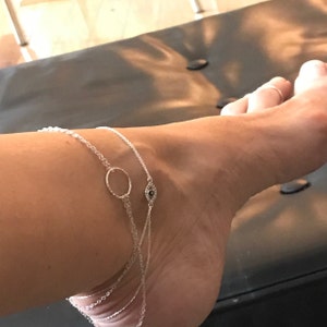 Sterling Silver Circle Anklet, Delicate Sterling Silver Anklet, Sterling Silver Karma Ring Anklet, Tiny Eternity Circle Ankle Bracelet #832