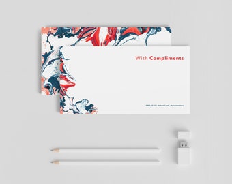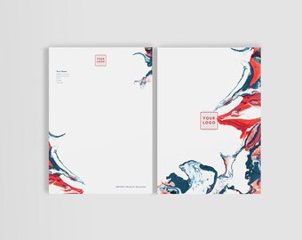 This modern business stationery pack features an elegant design using handmade marbled patterns ready for you to download digitally and add your branding. The packaged documents provide you with the templates shown, high res jpegs of the marbling, as well as blank versions for your own logo and brand font.