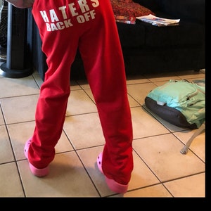 These Wisconsin Girl joggers are shown in camo with hot pink text, black with hot pink text or grey with Badgers red text. However, we can do the text in a wide variety of colors, so if you do not see what you want here, please just message us to ask for a different color.