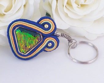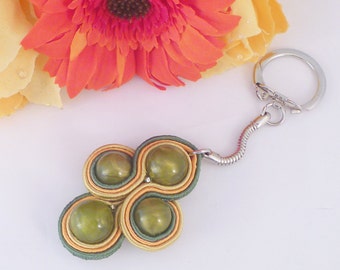 Soutache key chain. Soutache accessory MollyG Designs. Stocking filler. Mothers Day gift. New home gift. Recycled bead. Easter gift