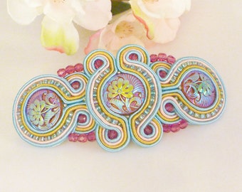 Soutache barrette. Beaded hair accessory. Czech glass beaded barrette. Soutache hair clip by MollyG Designs. Beaded soutache accessory.