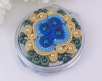 Compact mirror. Handbag mirror. Soutache accessory. Beaded handbag mirror. MollyG Designs. Ladies gift. Gift for her. Soutache decorated.