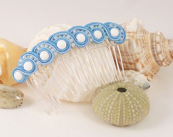 Beaded hair accessory. Soutache comb. Blue comb. MollyG Designs Coral beaded comb Soutache accessory. Decorative comb ladies gift idea.