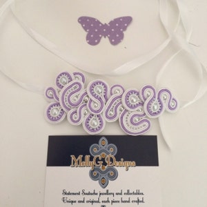 Steampunk soutache necklace. Butterfly jewellery. Steampunk jewelry. MollyG Designs Purple necklace. Soutache jewellery. Butterfly necklace.