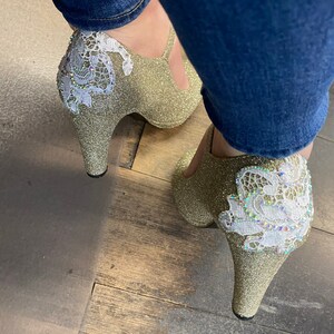Glitter lace wedding shoes low heel, glitter wedding shoes low heel, wedding shoes low heel, glitter heels white, white sparkly lace heels