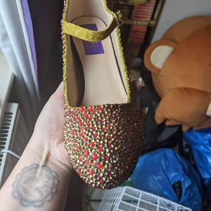 5 out of 5 starsI am IN LOVE with my shoes! Victoria was fantastic to work with and was able to customize my request to change these from heels to flats. I'm going to be wearing them in my wedding this spring to match my fiance's pastel tie-dye tie.