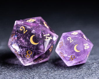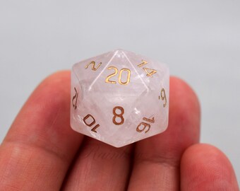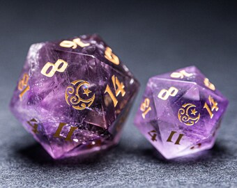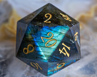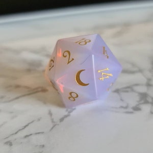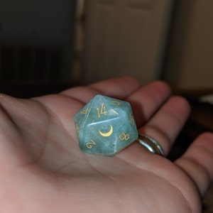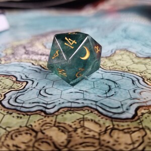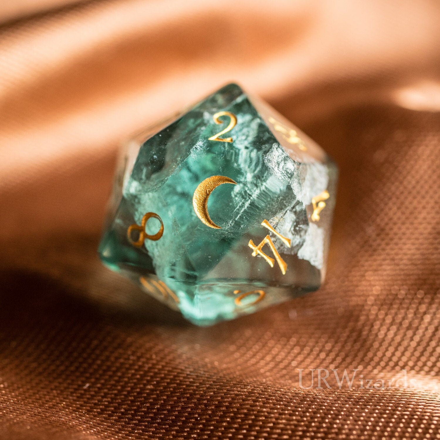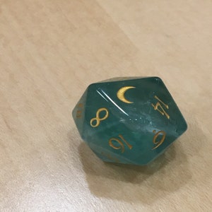 D20 Engraved Green Fluorite Gemstone D20 Dice - Dungeons and Dragons D20, RPG Game DND Moon Version