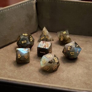 Gemstone dice are fragile, so I recommend that you can roll them on something with a soft surface, like a soft wool felt dice tray: