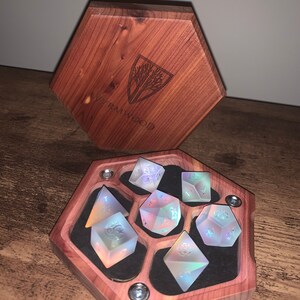 Such a beautiful and fun addition to my green fluorite set! Perfect for my circle of dreams druid, and it's already rolled spectacularly for me! It arrived so quickly and packaged with care. Absolutely recommend these dice from URWizards!