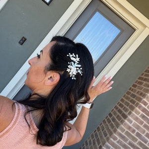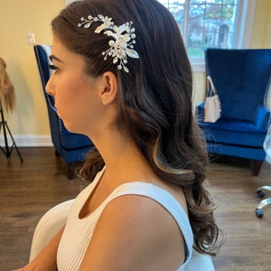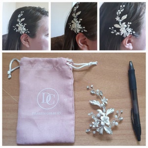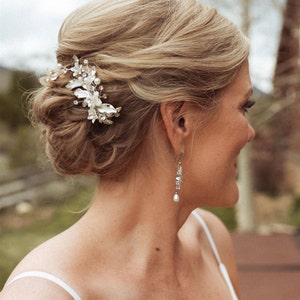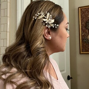 • Versatile, this hair clip can be worn in hair down, bridal updos, half up and down or other wedding hairstyles. The hand wired branches can be shaped for the perfect fit.