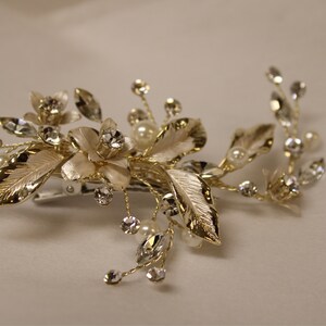Materials: Rhinestones, Pearls, Alligator Clip, Silver, Gold, Rose Gold, Metal Leaves, Metal Flowers, Off White Pearls, Crystals