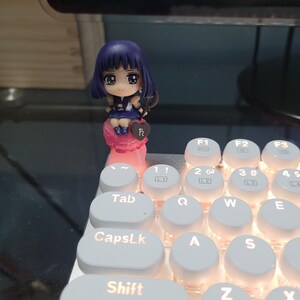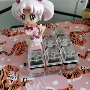 My Sailor Moon keycap was in perfect condition, Sailor Neptune looks super cute perched up on my keyboard. The keycap fits perfectly on my corsair cherry mx rgb keyboard and it easy to take on and off. The entire keycap from top to bottom is about 5.5 cm tall and the figure does stick out a little beyond the keycap just to be aware of the size. It weight about 20 g which is slightly more weight than some of my other keycaps; but my keyboard doesn’t have any problem supporting it. Due to the height and slight bulk I do keep it at the top row on one of the function keys so it can be on display and have more room.