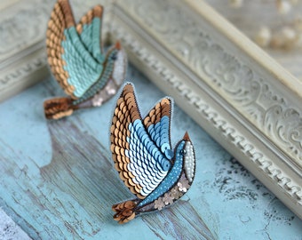 Swallow Bird Brooch... Bird Pin Turquoise Verdigris Vintage, VERDIGRIS BIRD BROOCH