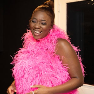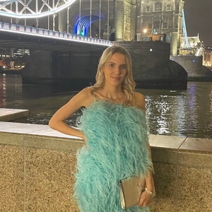 SGinstar Aston Shocking Pink Ostrich Feather Dress ,Feather Prom Dress, Feather Cocktail Dress Feather Wedding Dress Feather Pink Dress