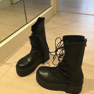 Extravagant Women Boots, Black Platform Shoes, Platform All seasons, Gothic Women Booties, Leather Ankle Boots, Platform Grunge Boots