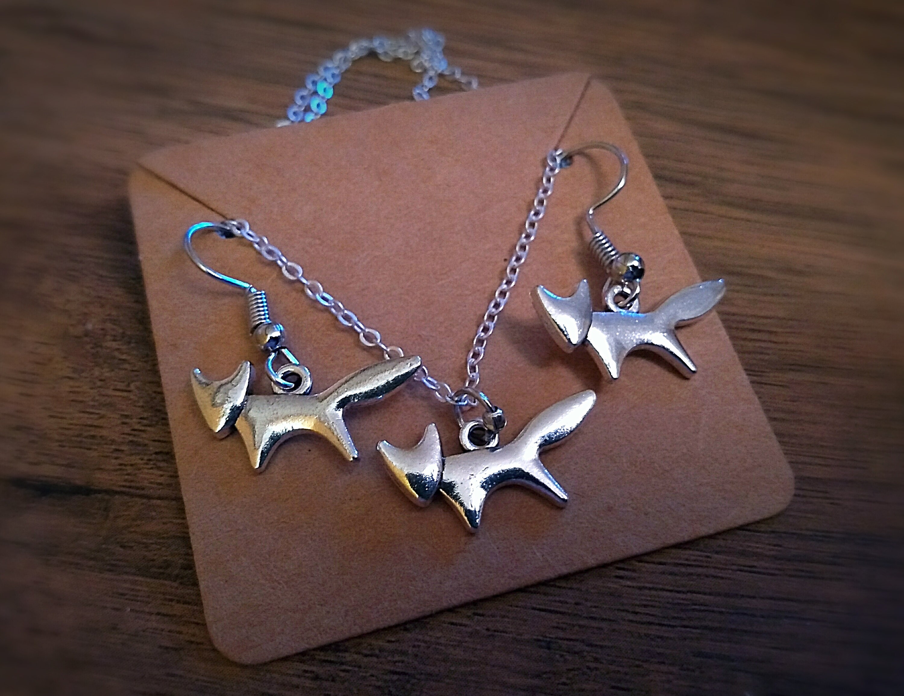 Cute Fox Charm Necklace and Earrings set