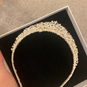 A handmade pearl and crystal hairpiece, designed and made in the UK with love and care.