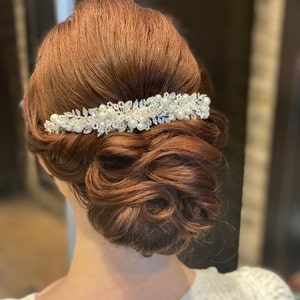 Absolutely BEAUTIFUL hairpiece! It's the perfect addition to my wedding outfit Be aware, it is quote a long piece (almost ear to ear!)