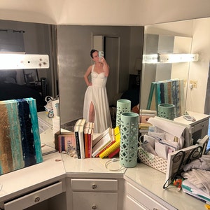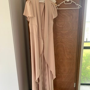 5 out of 5 starsJust WOW. This dress is stunning in person. I didn’t know what to expect, ordering online, but let me say - I was not disappointed. The material is beautiful. This dress is both simple and effortless. Very happy with my purchase and will purchase from this shop again.
