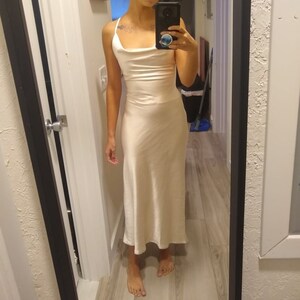 Gold silk slip dress cowl neck Golden midi dress bare shoulders and open back Dress for bridesmaid Satin dress for special occasions