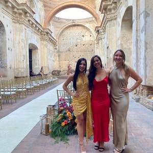 This dress was such a hit at the wedding I attended! IT IS SO FLATTERING! It arrived quickly and it met my expectations. I do recommend getting tape for the top as it felt a little risky/exposing without it!