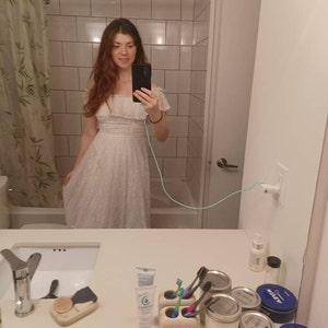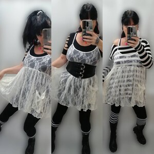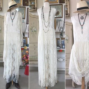 Ivory White Lace Maxi Dress. Perfect for a Wedding or anytime you want to wear something Lacey and Romantic. Maxi Length. Can be shortened easily as it is a straight hemline. Looks amazing with our Ivory Lace Duster or Pirate Lacey Jacket. Perfectly Boho! I have shown several ways you can wear it but it's ultimately up to you of course! Made of super soft Nylon Spandex. Falls beautiful and is super comfortable. Would also look amazing tied up with our Ivory Lace or Floral PantalOOnies!