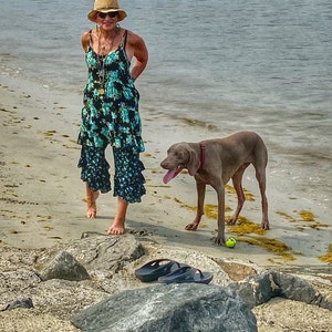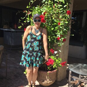 I especially love this tie dye Frenchie with a scoop neck! I previously bought this Frenchie but with the cowl neck and I had to have another Frenchie in this sensational color pattern!! I feel young and free while I am wearing this Frenchie even though this is a style my granddaughter loves!!!