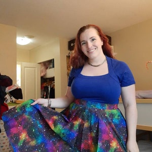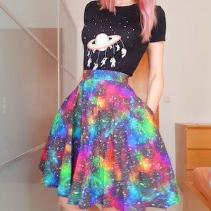 Skater skirt with pockets, rainbow skirt, galaxy fabric, celestial clothing, 50s style swing skirt, cotton circle skirt, skirts for women