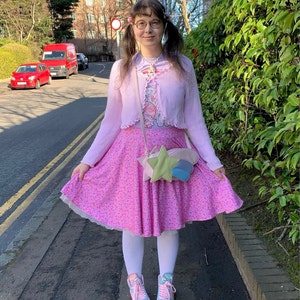 Skater skirt with pockets, Pink cotton jersey skirt, kawaii clothing, made to order, 50s skirt, full circle skirt, midi skirts for women