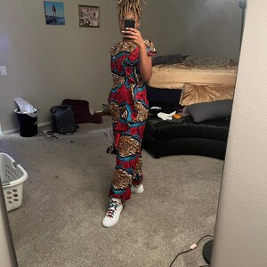 Abena Ankara Jumpsuit, African Print jumpsuit, Brown & Green Jumpsuit