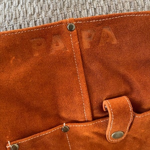 4.5 out of 5 starsThis is an ORANGE, SUEDE apron, not a leather apron. The seller needs to understand the stylistic differences between suede and regular leather. So two weeks out from Xmas, and I have to give my husband a gift that will make him look like he works at Home Depot (yes, it’s that orange). Don’t let the item details mention of photos betraying the true color of the item fool you. The apron is orange from top to bottom and it is not what the seller advertises. It also smells terrible: full of chemicals. Outside of that, it seems to be well made (which is why it gets two stars), but it is not at all what I wanted or thought I was buying. It’s a shame I can’t post pics in my review. I’m truly disappointed.