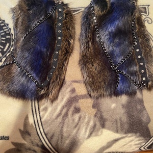 Black Blue and Tan Faux Fur boot covers/leg warmers with Faux Fur.