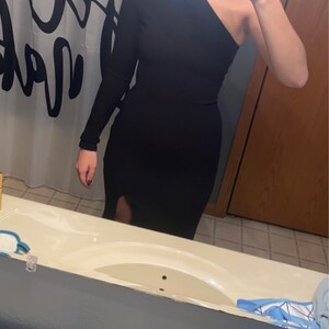 The seller was great at quickly replying! The dress came a lot quicker than I expected it to, and it is a very nice stretchy material! It came with a built in shoulder pad that I am going to remove, otherwise I love the dress!!