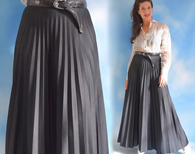 Vintage 70s Black Accordion Pleated High Waisted Full A Line Maxi Skirt (size small)