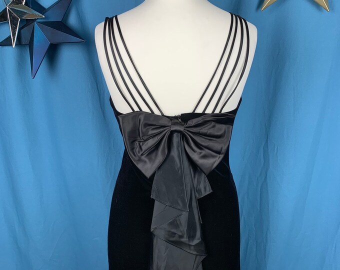 Vintage 80s stretch velvet bow back straps evening dress approximately size 10