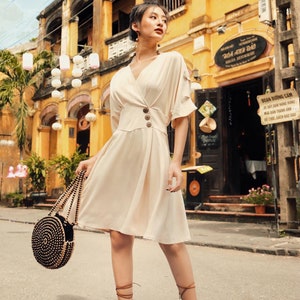 5 out of 5 starsFirstly, GREAT customer service. I got the dress that has buttons diagonally across it. It was a bit small, I did order my size. But when I messaged, Ngoc was so pleasant to speak to and send me a larger size ASAP! Very quick considering it’s from across the world! 🤍 the fabric is buttery soft. A little thinner than expected which is why I give 4/5. I do need a beige slip skirt but the top seems to be fine. Twirlability is 10/10!!🥰🥰 I felt like a princess Thank you for my beautiful dress!