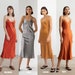 Silk Slip Dress with Cowl Neck, Gray Midi Silk Satin Dress, Camisole Dress for Special Occasions, Silk Cami Dress for Summer