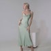Our cowl neck slip dress is made of tender silk and polyester blend. It hits mid-calf, has a sheath silhouette, opened back with thin elegant ties and adjustable shoulder straps.