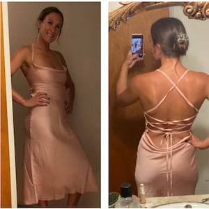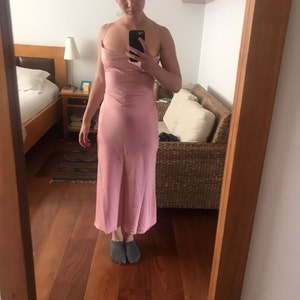Dusty pink color is gorgeous and attractive. The dress is not lined so you'll feel super comfortable! This silk slip dress is designed for a slim fit. If you want it to be a bit loose, opt for a larger size.